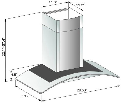 Buy Low Price From Here Now This AKDY 30" wall mount range hood features a contemporary Euro design in glass and stainless steel. The wall mount range hood has 760 CFM and features 2x2W LED light. Easy-to-remove, dishwasher safe anodized aluminum filters keep maintenance to a minimum. The non-return air flap keeps heat from escaping when the hood is not in use. The range hood is made of stainless steel with a brushed stainless steel finish and is accented with tempered glass wings. Other features include: